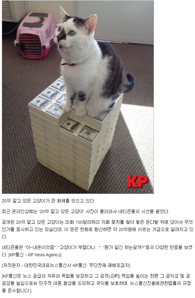 20억 깔고 앉은 고양이 화제, '돈의 맛?'...[펌]