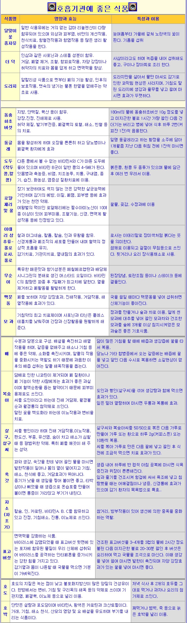 신체 부위별로 좋은 약초와 음식1