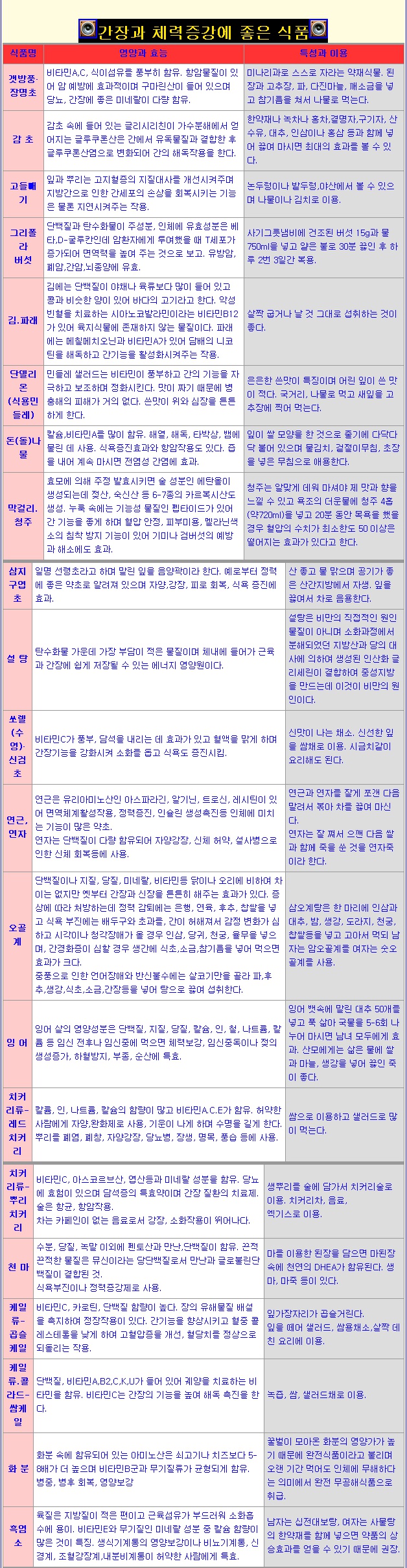 신체 부위별로 좋은 약초와 음식3